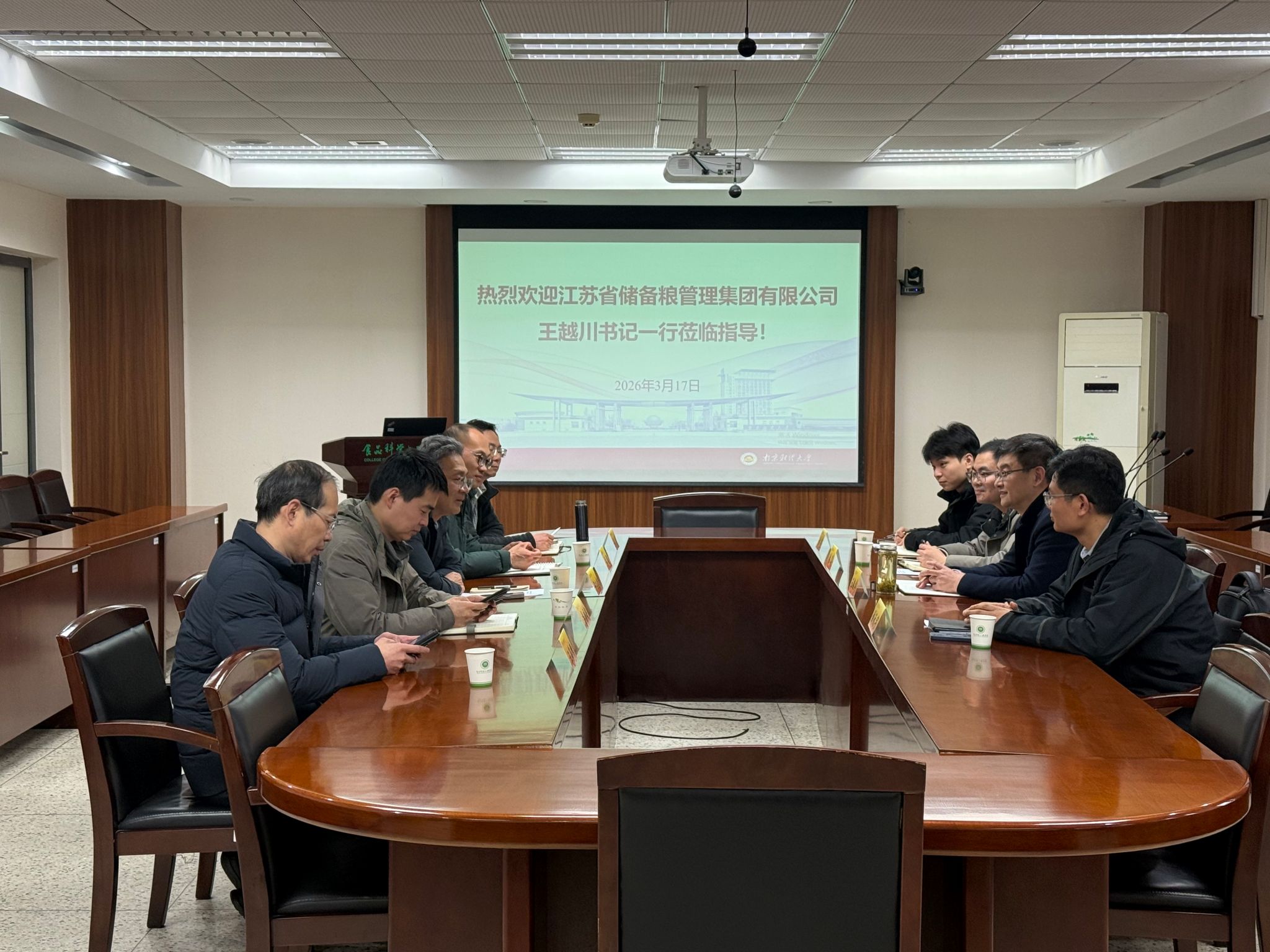 3月17日,江苏省储备粮管理集团有限公司党委副书记王越川、苏北粮油总经理张浩、省储粮溧阳库副总经理刘天宇、省储备粮昆山库姚堃等一行莅临我院调研交流。座谈会在食工楼211会议室举行,院长唐培安、院党委书记许文彪及部分教师代表出席会议。